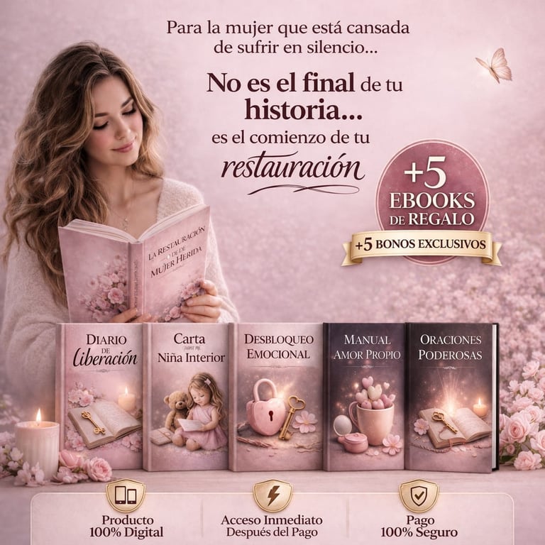 La Restauración de la Mujer Herida es un guía de sanación, reflexión y fe diseñado para ayudarte a liberar el pasado, recuperar tu valor y comenzar una nueva etapa con más paz, amor propio y esperanza.